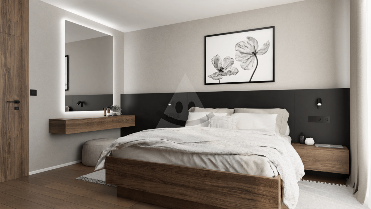 • Moderné vybavenie: Vodoinštalácia (ohrev TÚV spoločným tepelným čerpadlom), elektroinštalácia, zásuvky, vypínače, svietidlá, klimatizácia, podlahové elektrické kúrenie, sadrokartónové stropy, sadrová omietka, biela maľovka, plastové okná s izolačným trojsklom, dlažba na terase aj loggii, vonkajšia bioklimatická mechanická pergola, vnútorné žalúzie, vchodové a interiérové dvere, plávajúca podlaha vrátane soklových a prechodových líšt.