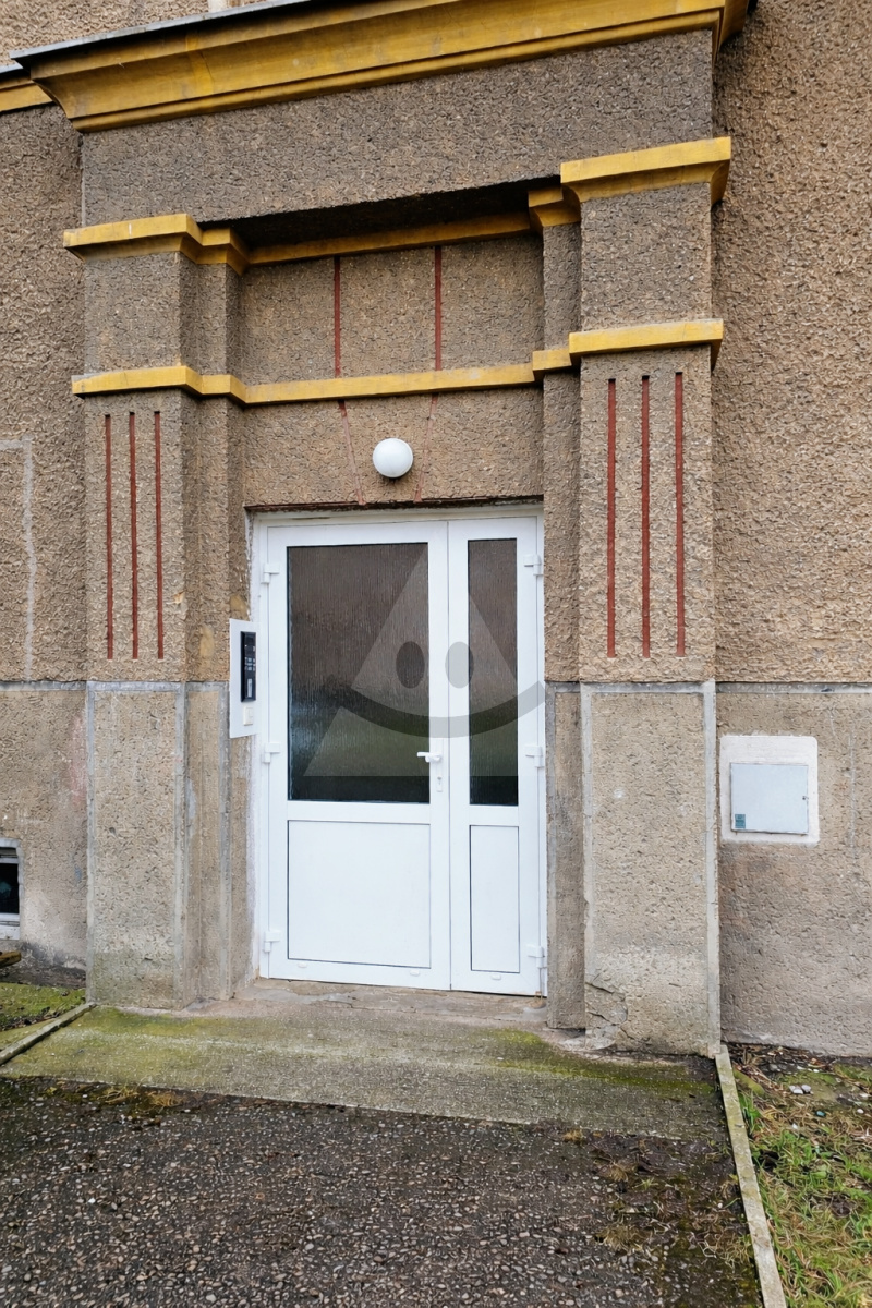 Vstup do bytového domu je zabezpečený novými vchodovými dverami s elektrickým vrátnikom.