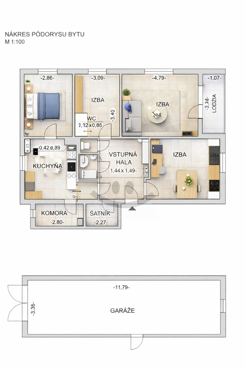 Na predaj apartmán Panorama Bojnice, 4. izbový, 109 m2 + terasa 13 m2.