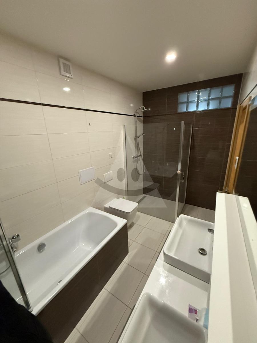 kúpeľňa s vaňou, sprchovým kútom, umývadlom a WC