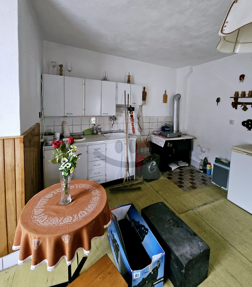 K domu prislúcha murovaný sklad a hospodárska budova, vybavená kuchynskou linkou, umývadlom, WC a bojlerom – ideálna ako letná kuchyňa, dielňa alebo hosťovská časť.