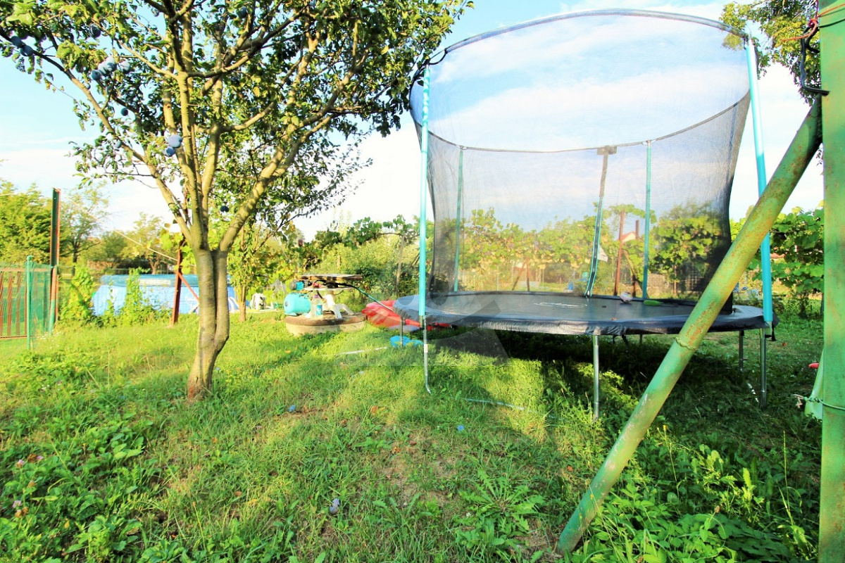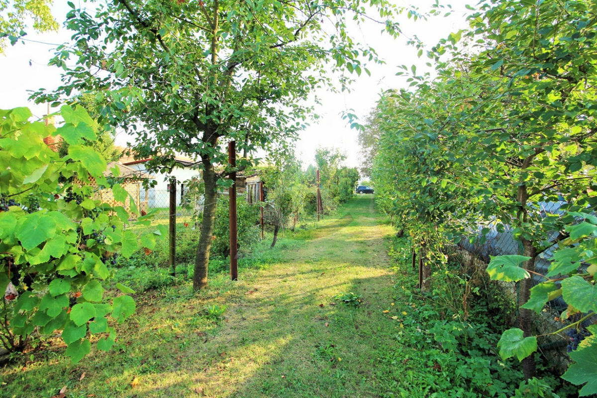 Na druhej strane príjazdovej komunikácie oproti rodinnému domu sa nachádza záhrada s množstvom ovocných stromov a s viničom, s náraďovňou, k dispozícií je aj novovybudovaná podzemná pivnica s výbornou klímou, vhodná na uskladnenie ovocia a zeleniny.